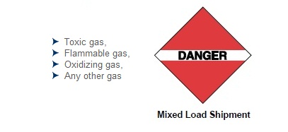 A mixed load of gases included in different divisions of class 2, transported together in a road vehicle, may be identified by a DANGER placard and a primary class placard for the most dangerous gas according to the following decreasing order of danger: